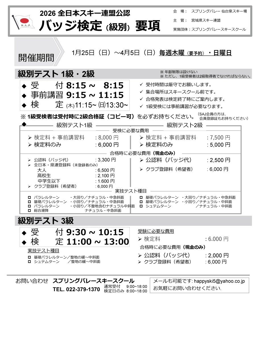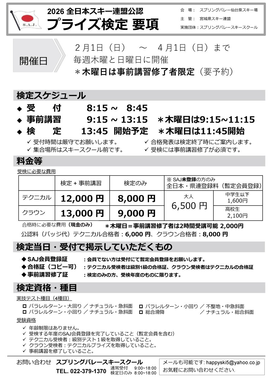 SAJ公認スキーバッジ検定&テクニカルクラウンプライズ検定のご案内