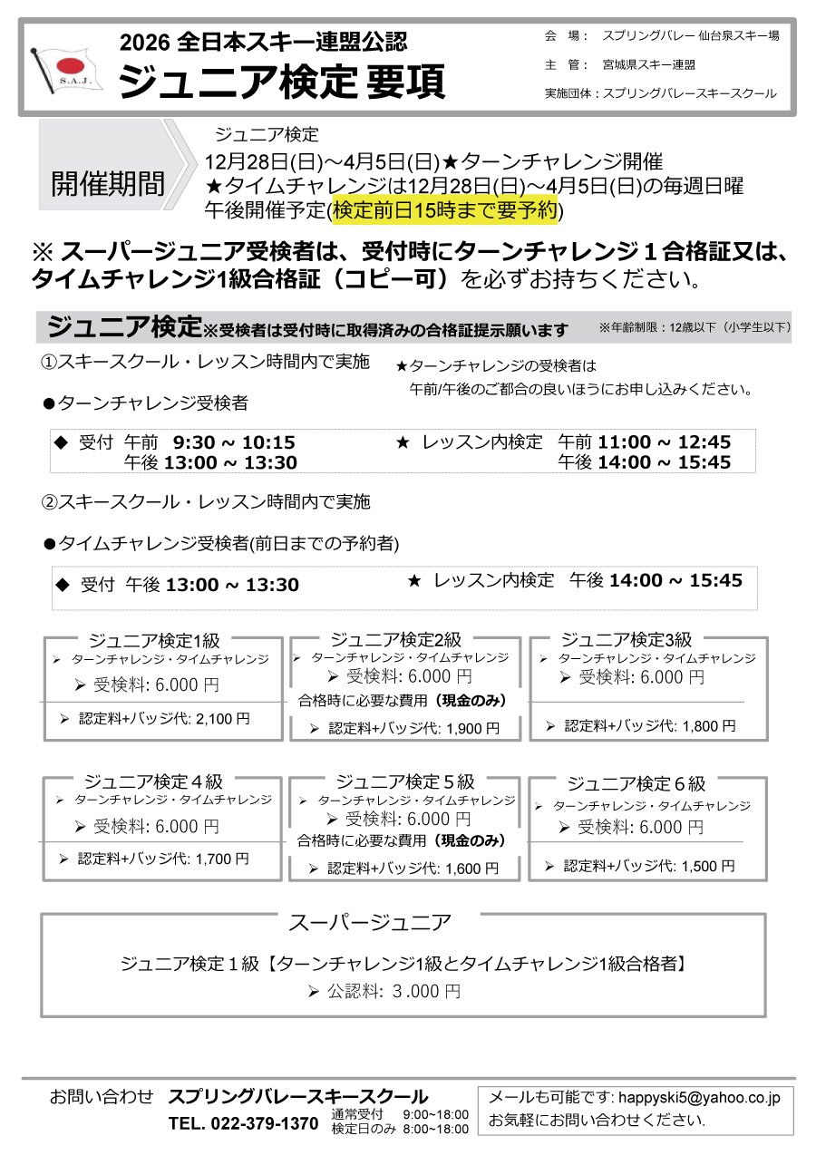 スプリングバレースキースクール直通電話 022-379-1370 (9:00~16:00)